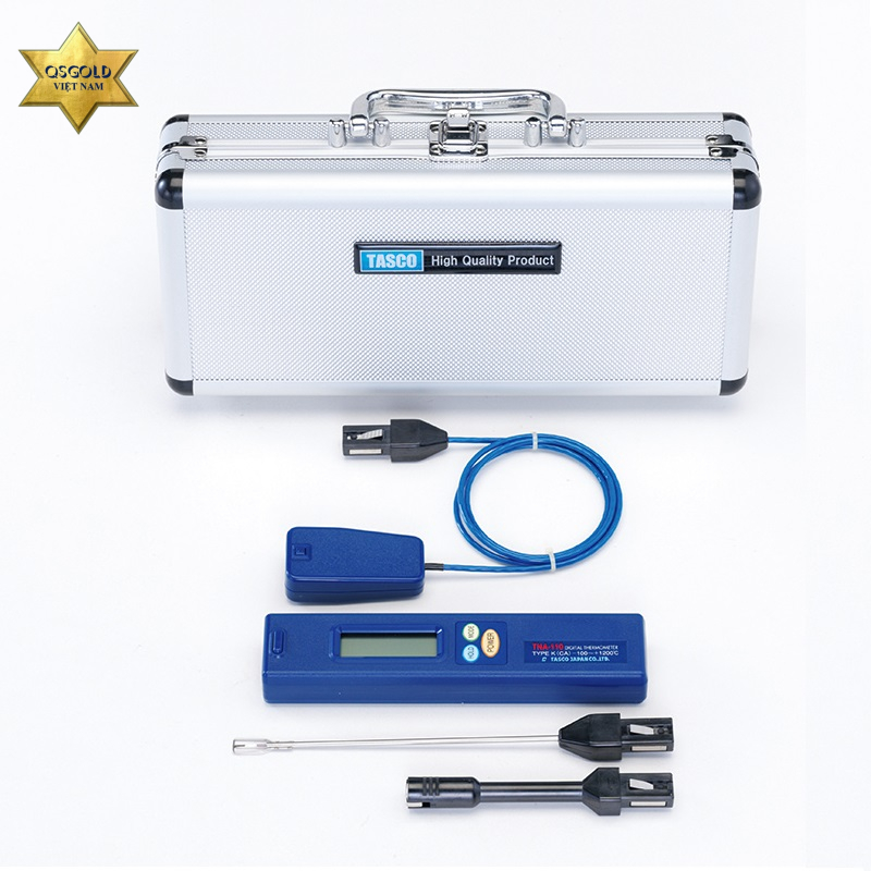 Nhiệt kế Tasco TA410AX là một bộ nhiệt kế điện tử kỹ thuật số chuyên dụng của thương hiệu Tasco (Nhật Bản), được thiết kế đặc biệt cho ngành kỹ thuật điện lạnh (HVACR). Đây là loại nhiệt kế đo tiếp xúc sử dụng đầu dò (sensor) kiểu K. TA410AX được trang bị nhiều loại đầu dò khác nhau để đo chính xác nhiệt độ ở các vị trí quan trọng trong hệ thống lạnh.